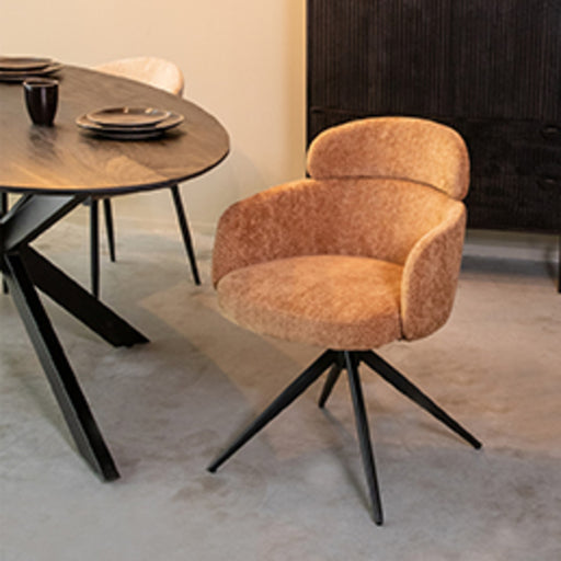 LABEL51 Eetkamerstoel Amaze - Cognac - Micro Suede - Zwart