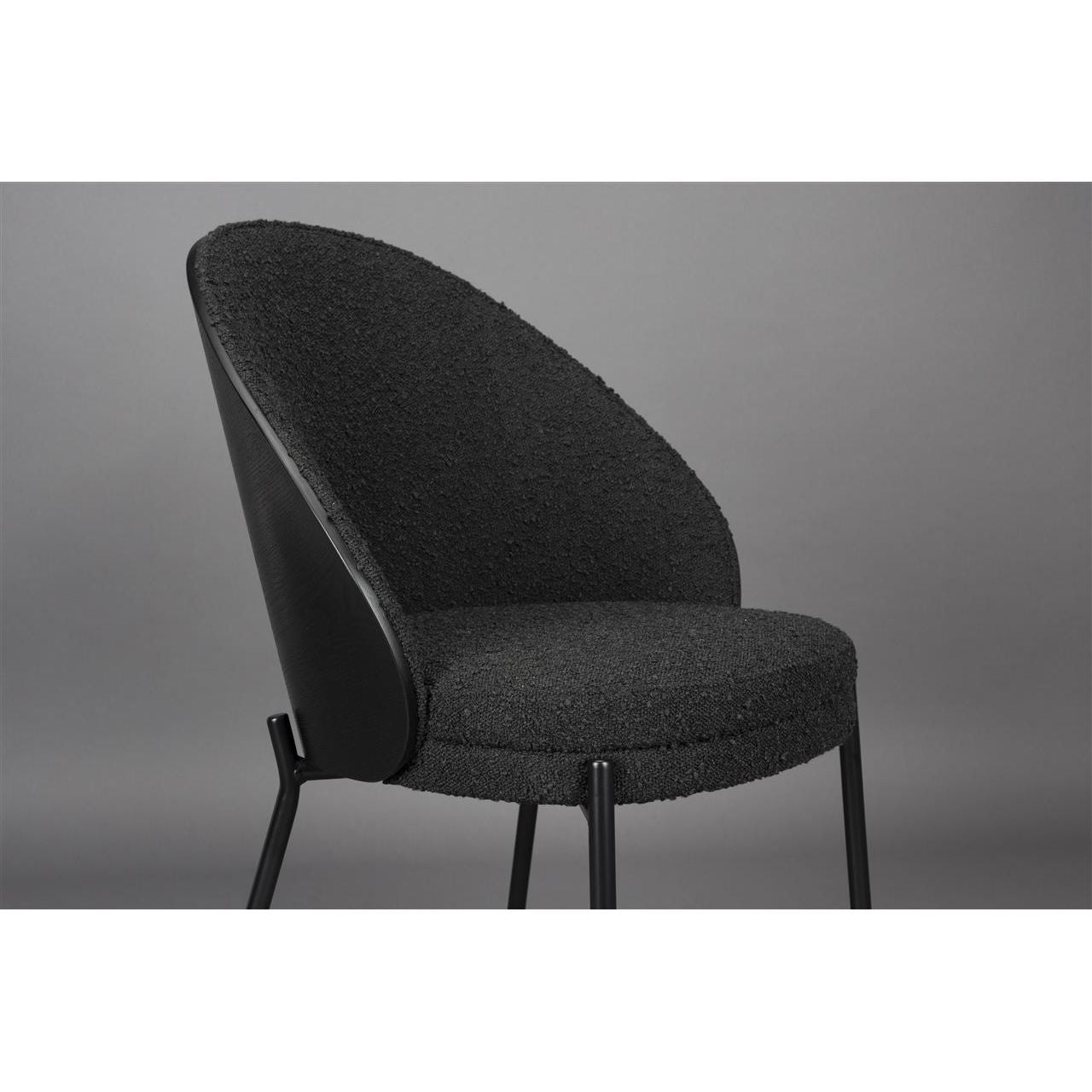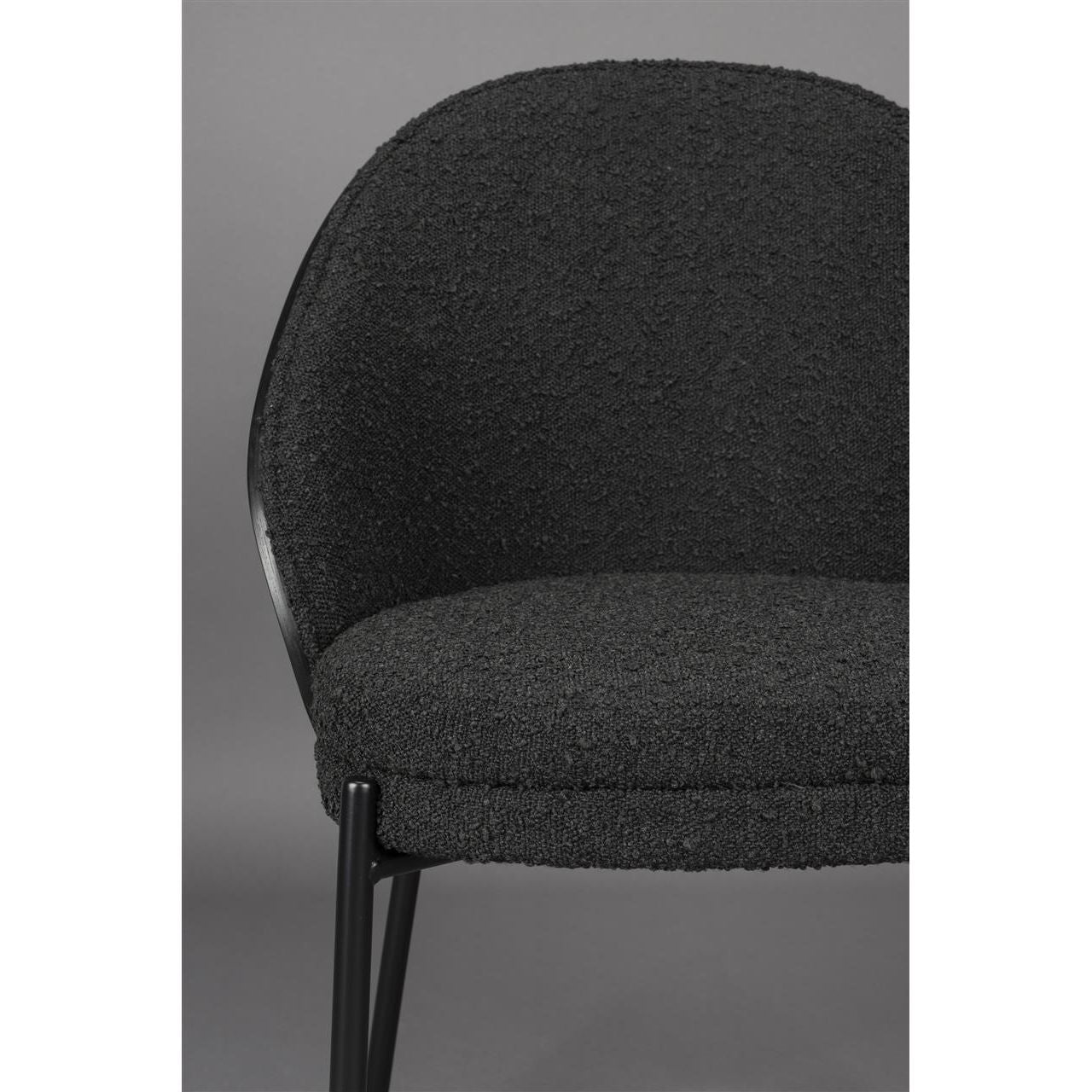 Wil je jouw interieur een sophisticated en tikkeltje retro sfeer geven? Dat doe je met de Dutchbone Rodin. Deze eetkamerstoel en fauteuil stralen namelijk pure kwaliteit uit. De rugleuning van gebogen hout is afgewerkt in een prachtige, diepe zwarte kleur. Deze steekt mooi af tegen de bouclé bekleding van de zitting. Een look die doet denken aan design uit de jaren 50 en 60. Toch maken de slanke pootjes van zwart metaal de stoel helemaal van nu. Perfect om de woon- of eetkamer mee om te toveren tot een warme plek om samen te komen met geliefden – a place to warm your soul. Verkrijgbaar als eetkamerstoel of fauteuil Bekleed met zwarte, bouclé stof Heeft een heerlijk comfortabele zit Met een rugleuning van gebogen hout en zwarte finish Vult de ruimte met een warme sfeer
